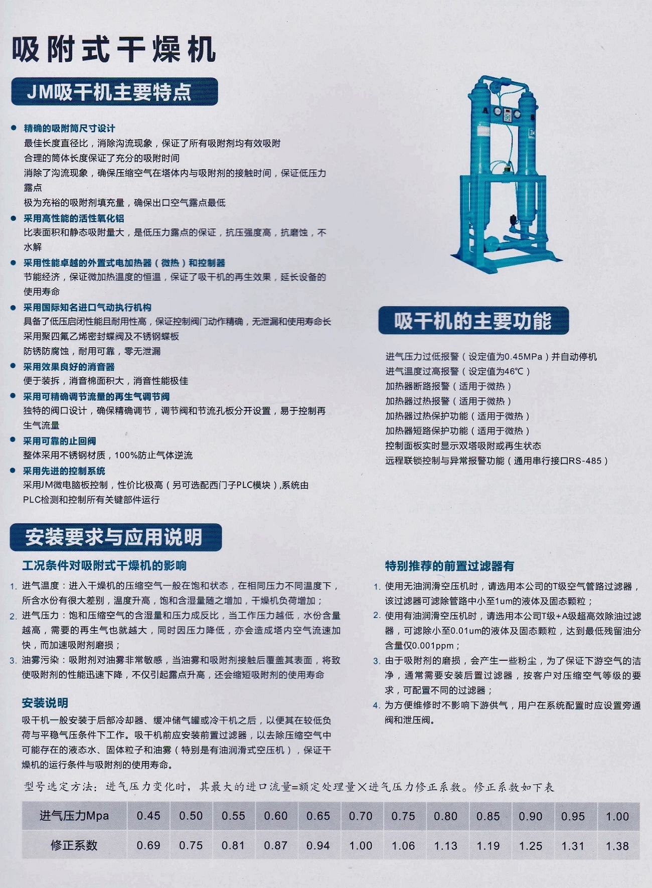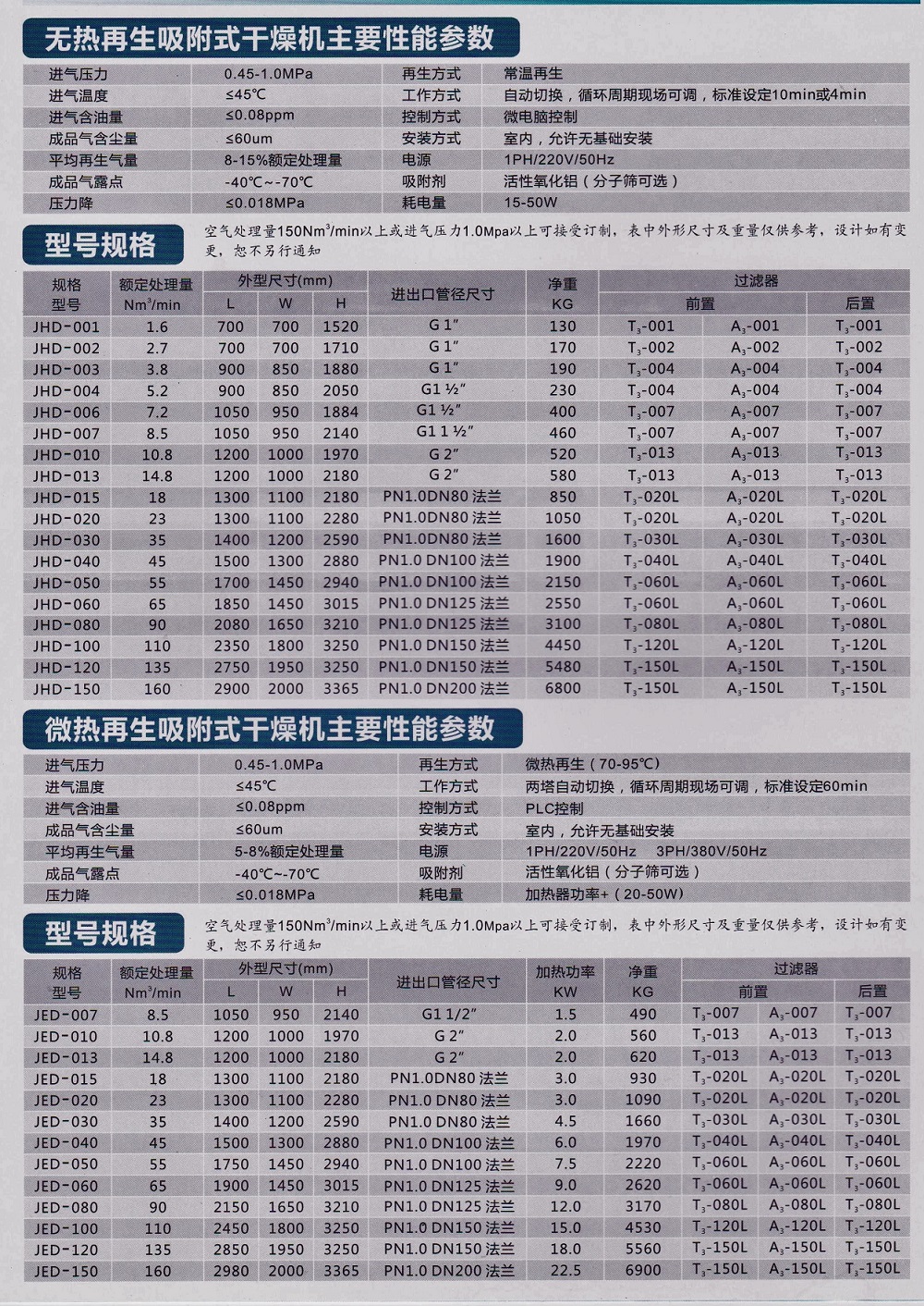 吸附干燥机选型及参数表